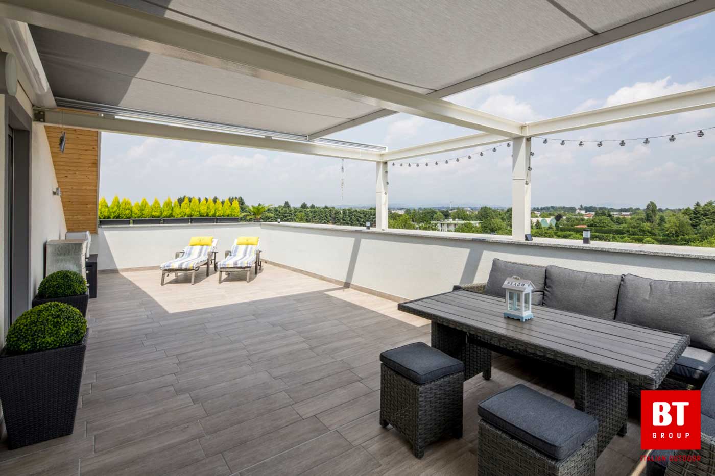 La tenda a guide laterali Avvolgibile è la soluzione ideale per lucernari, verande e pergolati, anche in legno. Grazie al sistema di traino a cavo, il telo resta sempre in trazione in qualsiasi posizione. Installabile in verticale, orizzontale o con inclinazioni intermedie, è dotata di motore elettrico, cassonetto e terminale ispezionabile.